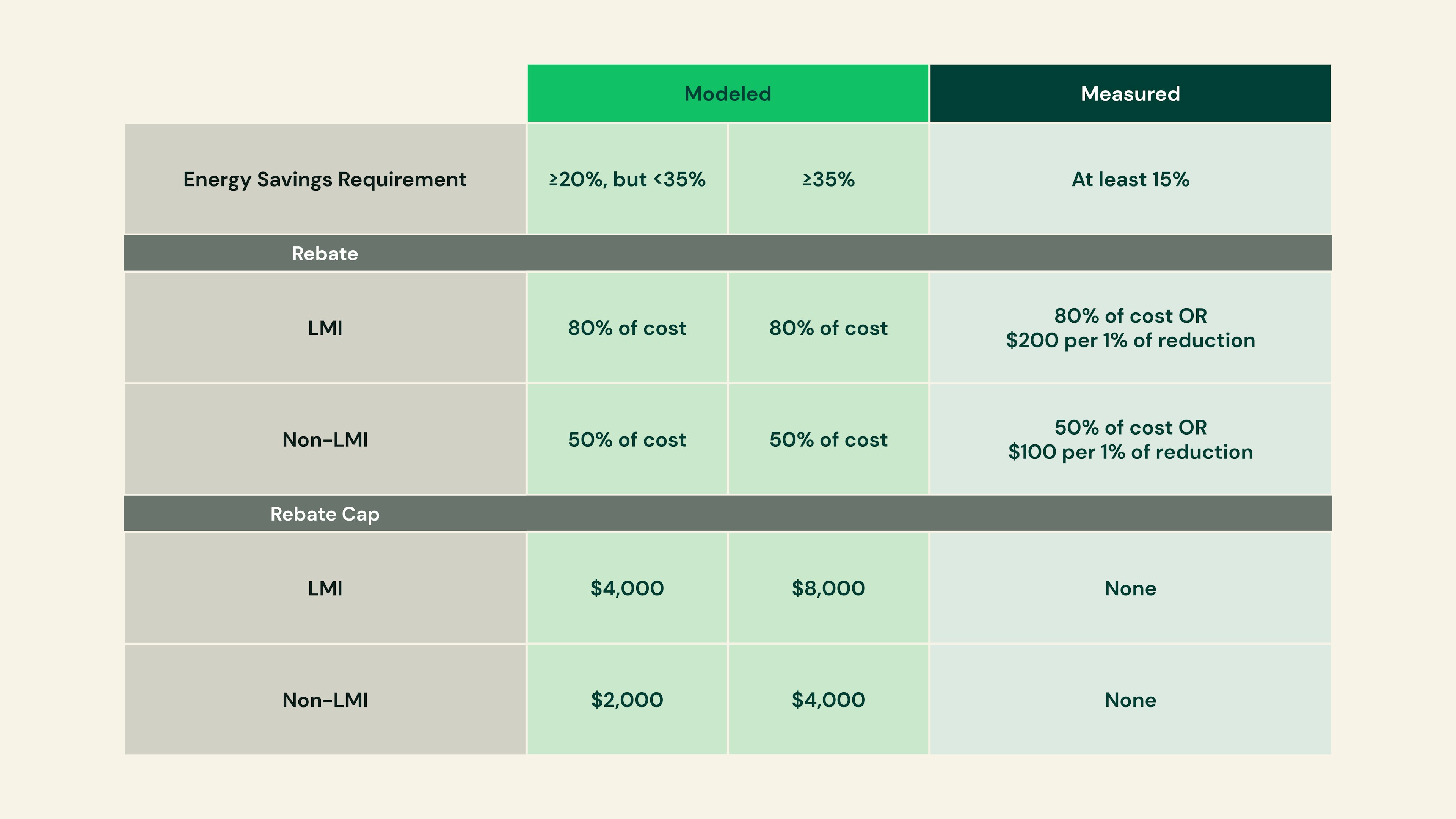 You can see how these three elements combine in this summary of the HOMES Act rebates.