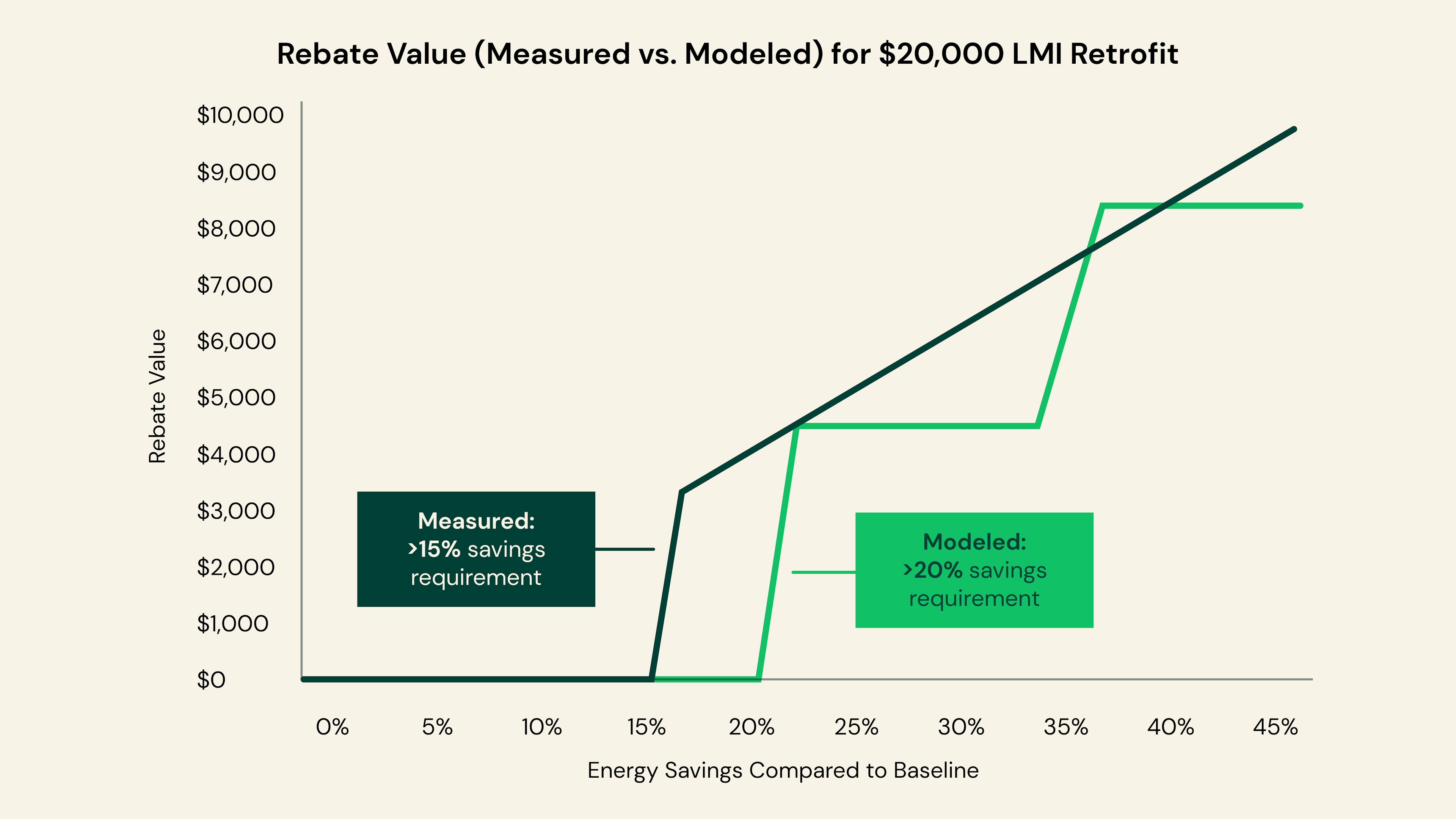 The HOMES Act rebates vary in three ways: First, bigger impacts get bigger rebates. Second, rebates get bigger if the impacts are delivered to low-income households. Third, impacts can be calculated in different ways, and more precise calculations earn bigger rebates.