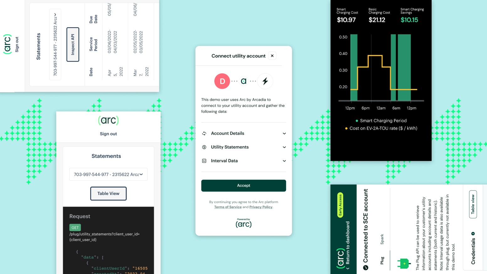 Arcadia is helping energy innovators address all of these challenges. Our Arc API platform handles the work of integrating with utility companies so that your team can focus on building great customer experiences. To learn more about how Arc tools can support your business, contact our Enterprise Solutions team to learn more at arcsales@arcadia.com.