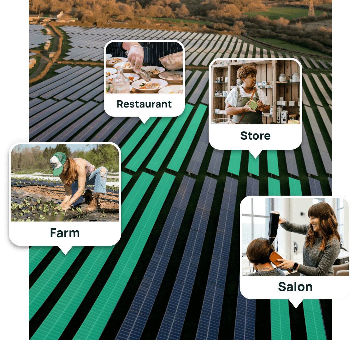 We currently serve thousands of business owners across multiple states, and on average, those who've received at least 12 months of community solar credits are seeing $700 savings per year off their electricity expenses*. Exact savings will vary as it depends on the discount rate being offered by the solar project in your area—as well as your business' monthly electricity use, seasonal sunshine levels, and other factors. Our community solar projects typically offer up to a 5%-15% discount off solar credits. Generally, the more electricity your business uses, the more solar credits you'll receive, and the higher your savings will be.